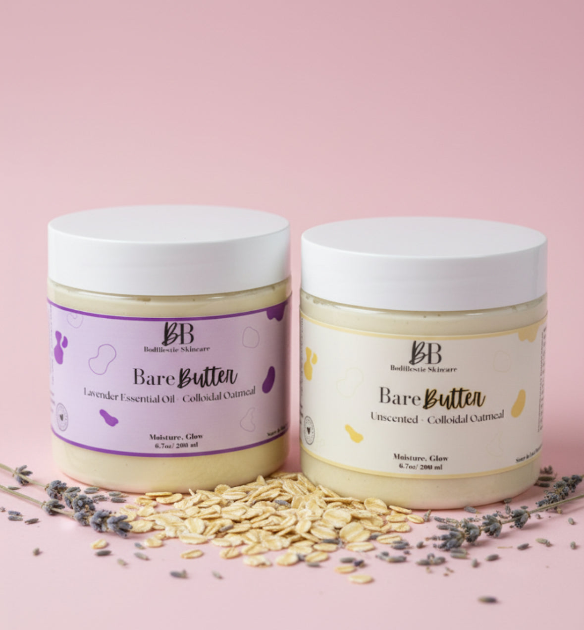 It's a butter but looks like a Balm ...... its made to Soothe, calm, and deeply nourish your skin .Bare Butter is a rich, ultra-hydrating blend specially formulated for eczema prone, dry, itchy, or sensitive skin. Crafted with love and care, this buttery blend helps restore your skin’s natural moisture barrier while providing relief from irritation and discomfort.